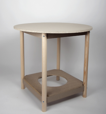 Round brazier table in chipboard, with rounded leg in natural pine.