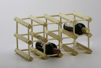 Bottle rack made of pine wood sticks, stack and easy assembly.